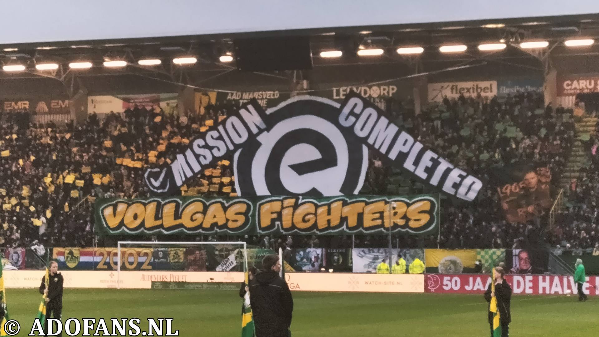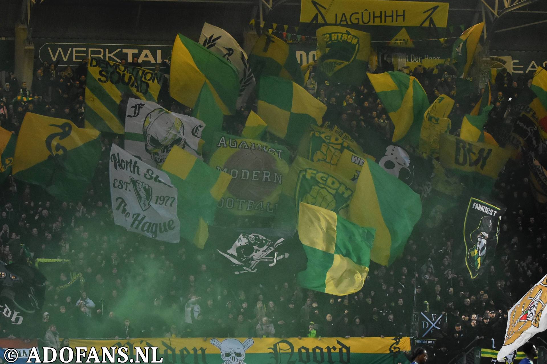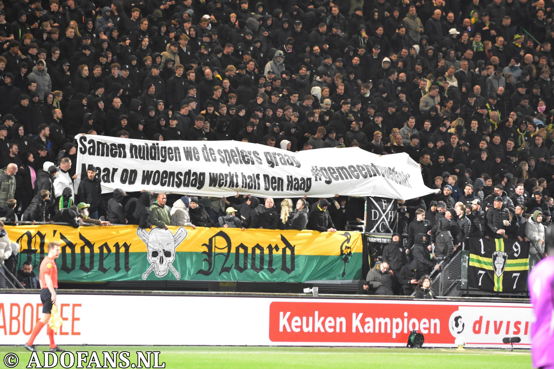 Het stadion was zo goed als uitverkocht, zelfs het uitvak was gevuld met Haagse supporters, er was een mooi spandoek op de Aad Mansveldtribune en op Midden-Noord een overvloed aan vlaggen. Kortom de sfeer was goed voor de aftrap van de wedstrijd.